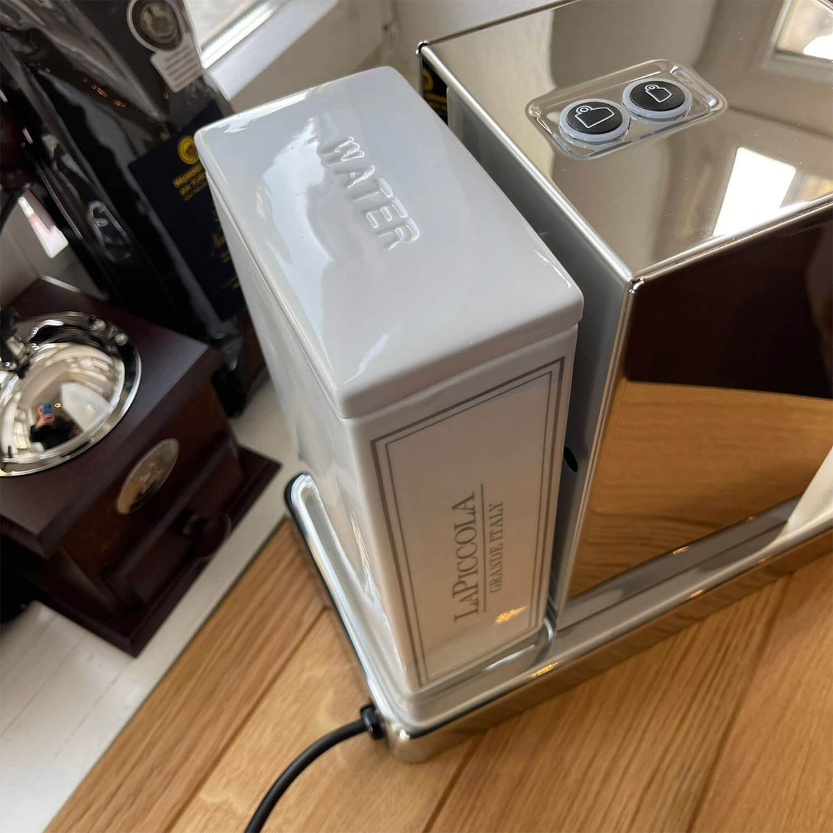 Im Vergleich zur manuellen Piccola kommt die Automatik mit einem verbesserten Wassertank aus weißer, pflegeleichter Keramik: