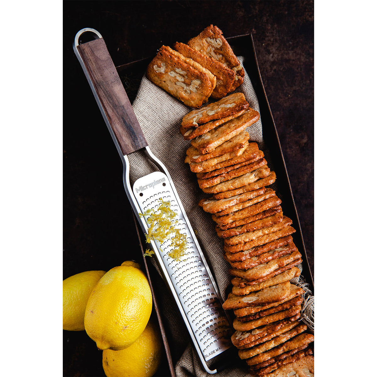 Mit unserem Streben nach der perfekten Kombination aus Stil und Effizienz haben wir die raffinierte und exklusive Master Serie kreiert. Der elegante, anmutige und stylische Walnussholzgriff aus Kentucky, USA erinnert an den Ursprung der Microplane- Küchenreiben, die aus der Holzwerkstatt in die Küche gelangen.