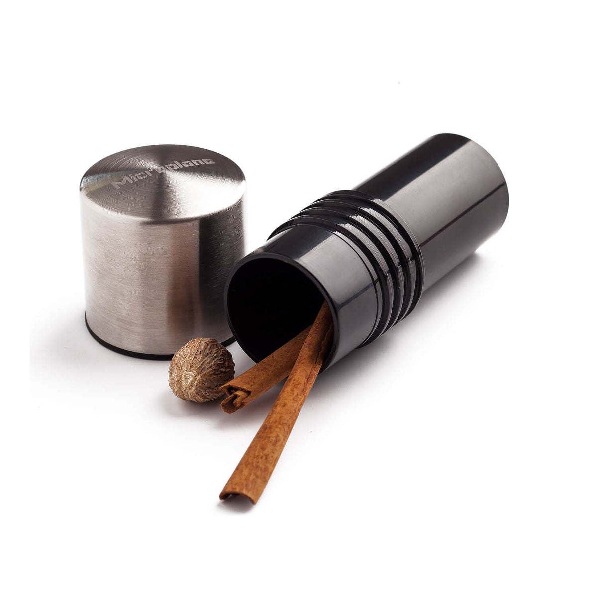 Gewürze wie Muskatnuss, Zimt, langer Pfeffer, Nüsse und Tonkabohnen mühelos reiben und aufbewahren