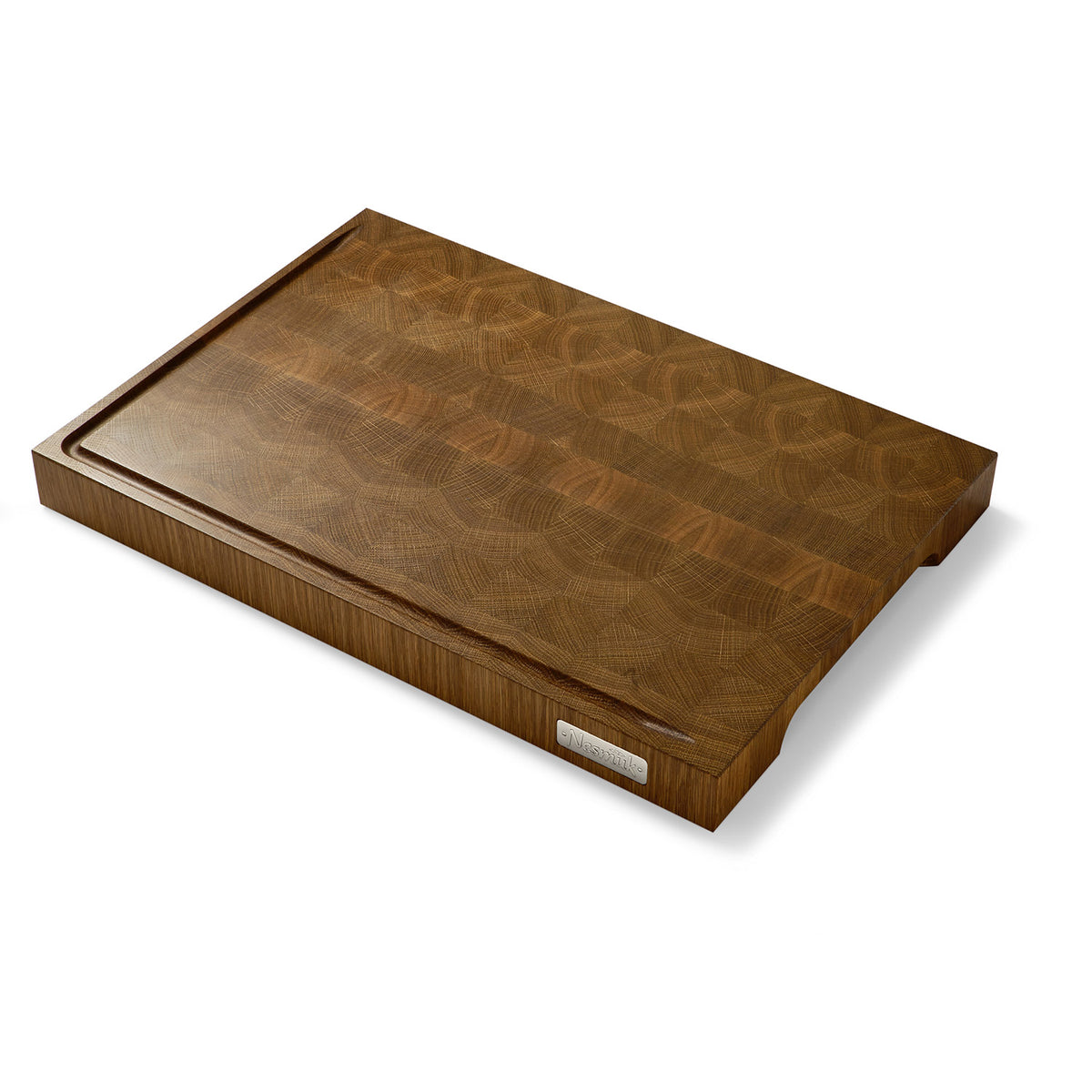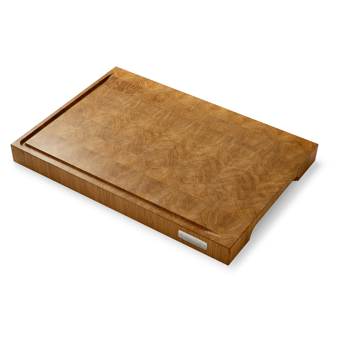 Alle Nesmuk Hack- & Schneidbretter L Eiche gerĂ€uchert sind mit gröĂter Sorgfalt aus dem Kernholz deutscher Eiche gefertigt â das Kernholz ist der Ă€lteste und wertvollste Anteil eines Stammes. Die einzelnen Leisten werden von Hand ausgewĂ€hlt und zum charakteristischen Muster zusammengefĂŒgt. Dank des hohen Gehalts an natĂŒrlicher GerbsĂ€ure ist Eichenholz von Natur aus antibakteriell und entspricht hohen hygienischen Anforderungen. Nesmuk setzt in der Fertigung der Halterung auf verschraubte GummifĂŒĂe fĂŒr Rutschfestigkeit und einen sicheren Halt auf allen ArbeitsflĂ€chen.