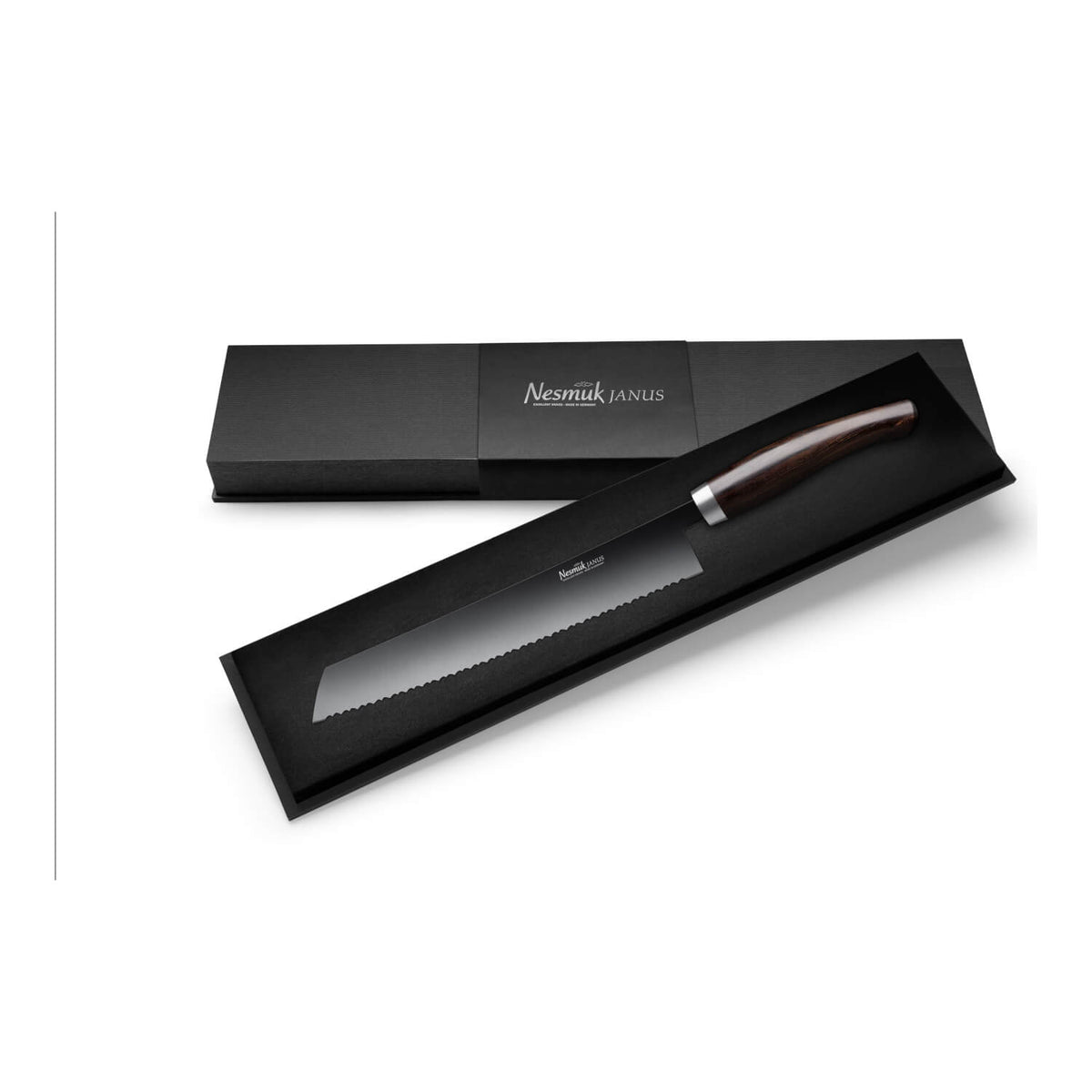 Brot ist in vielen Ländern der Welt ein wichtiges Grundnahrungsmittel und genießt einen hohen Stellenwert. Insbesondere in Europa gilt Brot als Kulturgut. Das zeigt sich auch an der unglaublichen Vielfalt der Brotsorten. Aus dieser Vielfalt ergeben sich spezielle Anforderungen an ein Brotmesser. – Es sollte weiches Brot ohne viel Druck und Bildung von Krümeln sägen und sich gleichzeitig mühelos durch harte Krusten arbeiten. Hierfür ist das JANUS Brotmesser 270 mm Griff Karelische Maserbirke wie gemacht.