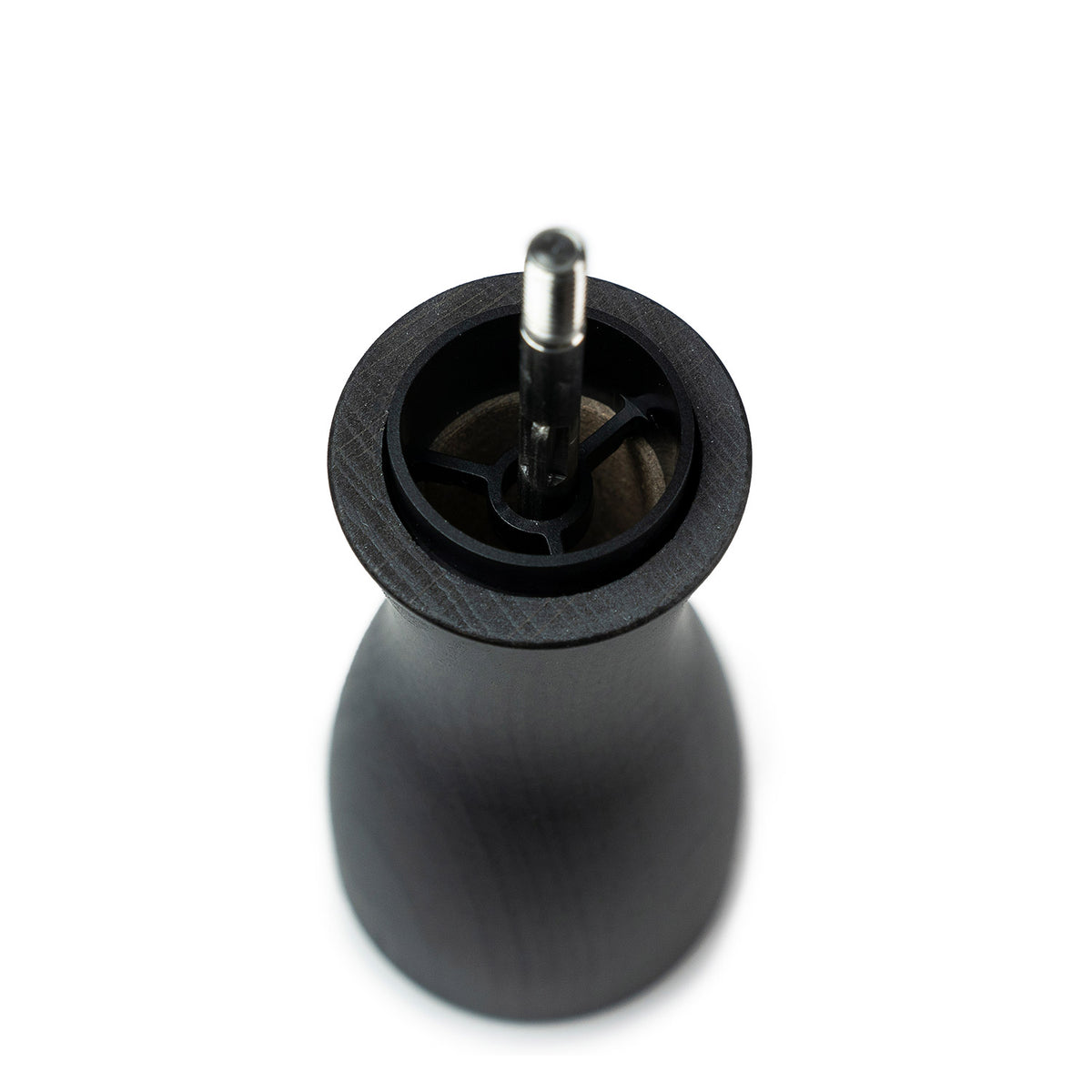 Die Silhouette der 15 cm großen, graphitfarbenen Pfeffermühle Fidji steht für Sinnlichkeit, Charme und Eleganz. Ihr geschwungener Buchenholzkörper harmoniert perfekt mit dem Kopf aus gebürstetem Edelstahl. Der mit dem Licht spielende anthrazitgraue Farbton macht die Mühle zu einem Muss.