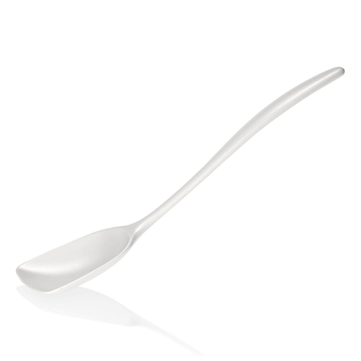 Der breite Rosti New Klassik Kochlöffel in weiss hat ein funktionales Design und ist hervorragend zum Rühren in Töpfen geeignet. Die breite Form macht es einfach, am Boden des Topfes bis an die Kante zu rühren. So wird vermieden, dass sich dort etwas absetzt.