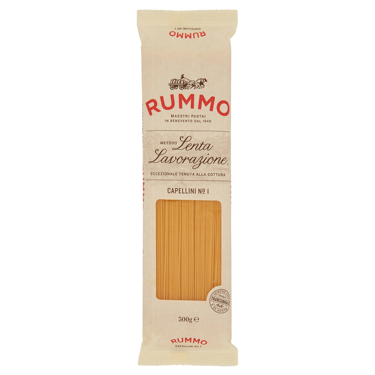 Die Rummo Capellini N° 1 aus Hartweizen sind eine zarte, traditionelle Form der Nudel. Sie benötigt eine sorgfältige und aufmerksame Zubereitung. Sie sind ideal mit frischen Tomatensaucen, in Brühe oder einfach mit Butter und Salbei. Die Kochzeit beträgt ca. 3 Minuten.