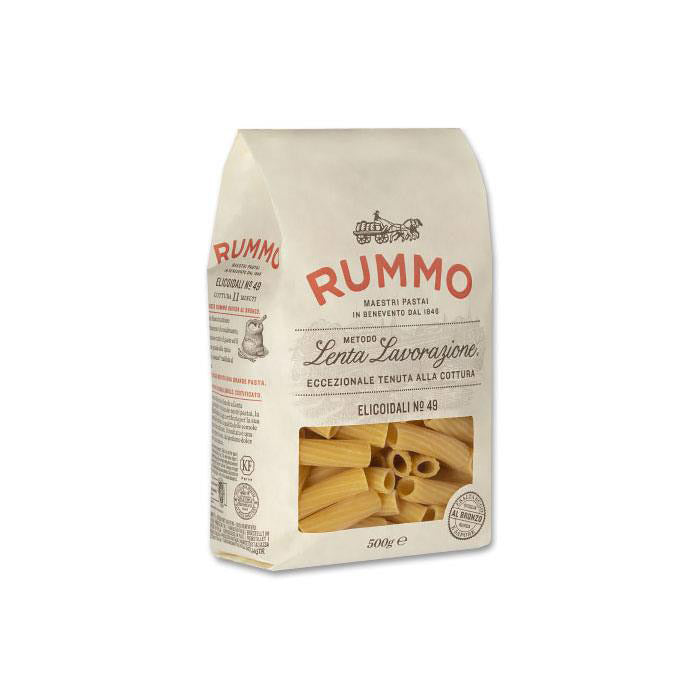 Die Elicoidali von Rummo zeichnen sich durch ihre gerillte Außenfläche und großen Durchmesser von 1,2 cm aus Sie sind ie eine der bekanntesten Nudeln der Welt. Diese Art von Nudeln eignen sich für alle Soßen, insbesondere für Fleisch- oder Gemüsesaucen.