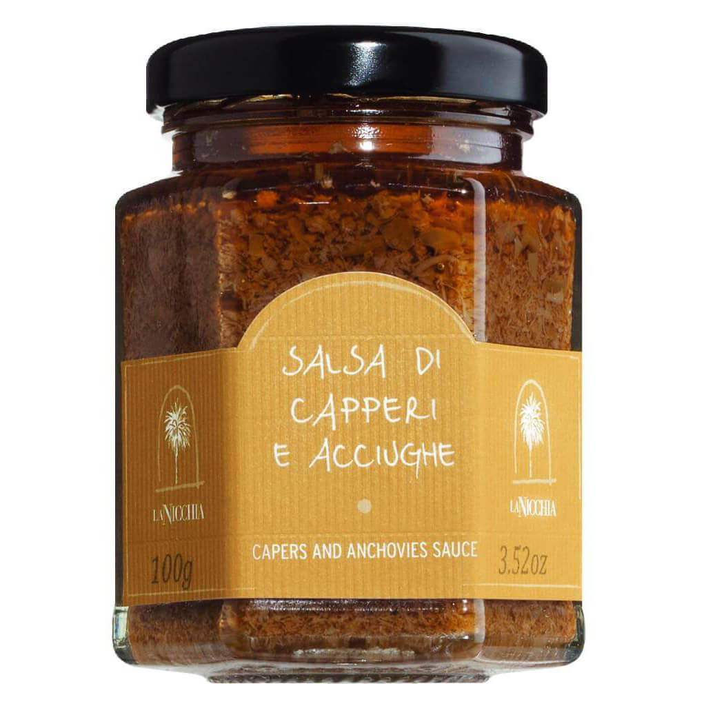 Genießen Sie das Flair Pantellerias mit La Nicchias Kapernsauce mit Sardellen. Die Premium-Qualität aus Italien vereint Kapern, getrocknete Tomaten, grüne Oliven, Sardellen und eine leichte Schärfe zu einer vielseitigen Sauce für Bruschetta, Focaccia oder Ihre Lieblingspasta.