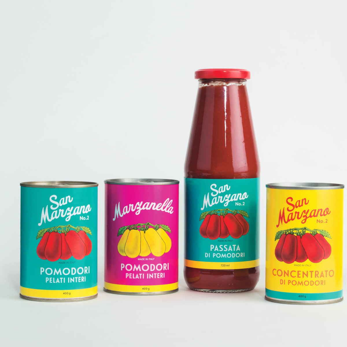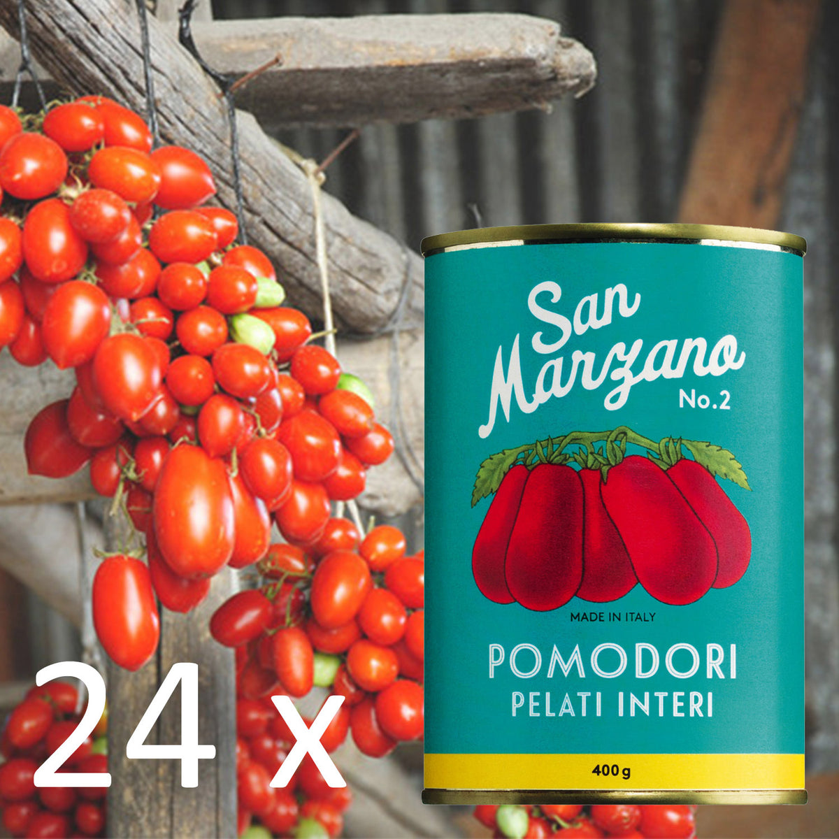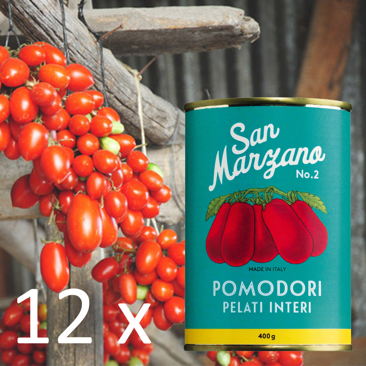 Die bewährten San Marzano Tomaten aus der Dose, sind unentbehrlich für die italienische Küche. Ihre langjährige Beliebtheit spiegelt auch die Vinatageausstattung wider. Die San Marzano Tomate wird von Juli bis September geerntet und verarbeitet in San Valentino Torio.