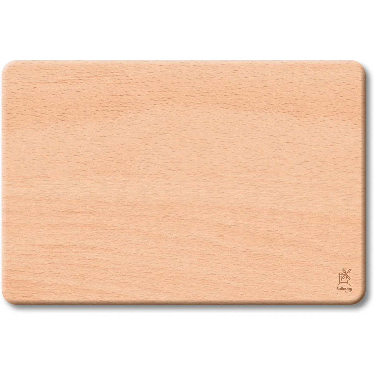 Das kleine Schneidbrett rechteckig von Windmühle aus Solingen hat eine Größe von 24,5 x 15 x 1 cm und wird aus deinem gedämpftem Stück Buchenholz der Rotbuche geschnitten und gefertigt. An den Seiten sind Unterfräsungen eingearbeitet, so dass das Brett leicht gegriffen werden kann.