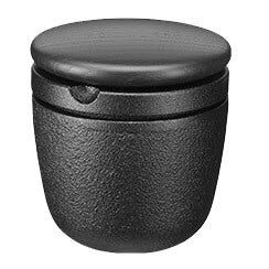 Im oberen Teil befindet sich ein Fach für die Gewürze. Die Außenseite ist mit einer schwarzen Lackoberfläche behandelt, um Fleckenbildung zu vermeiden.