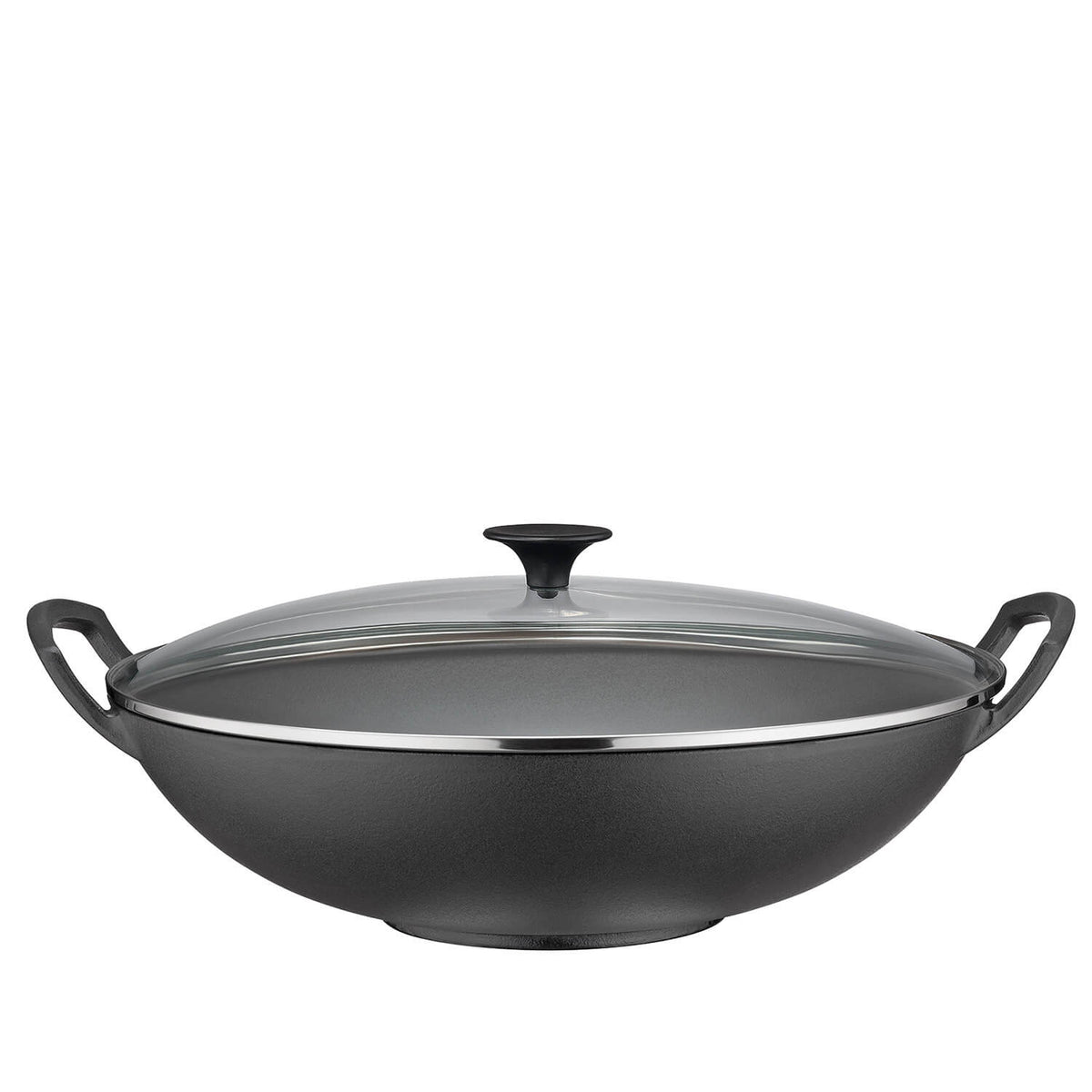 Spring Wok-Set aus Gusseisen mit Glasdeckel, Ø 35 cm