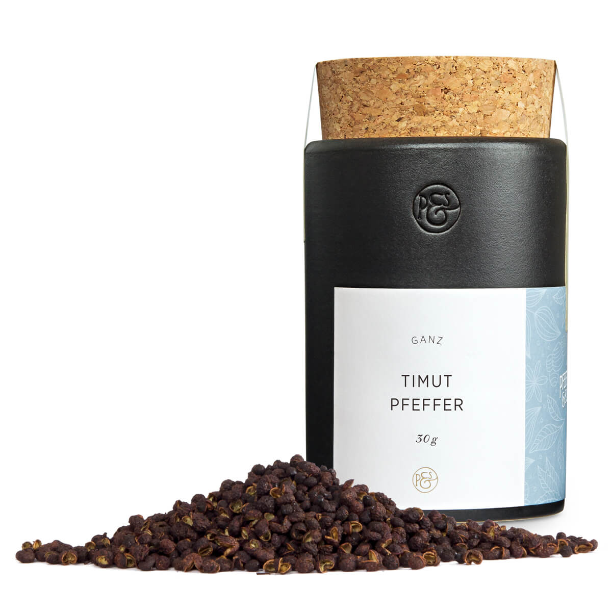 Der Timutpfeffer besitzt frische Zitrusaromen und eine prickelnd-betäubende Schärfe – aber darüber hinaus auch ganz besonders intensive Kräuternoten, die wunderbar zu Fisch und Meeresfrüchten, aber auch zu Desserts passen.