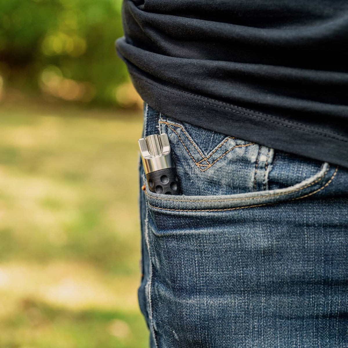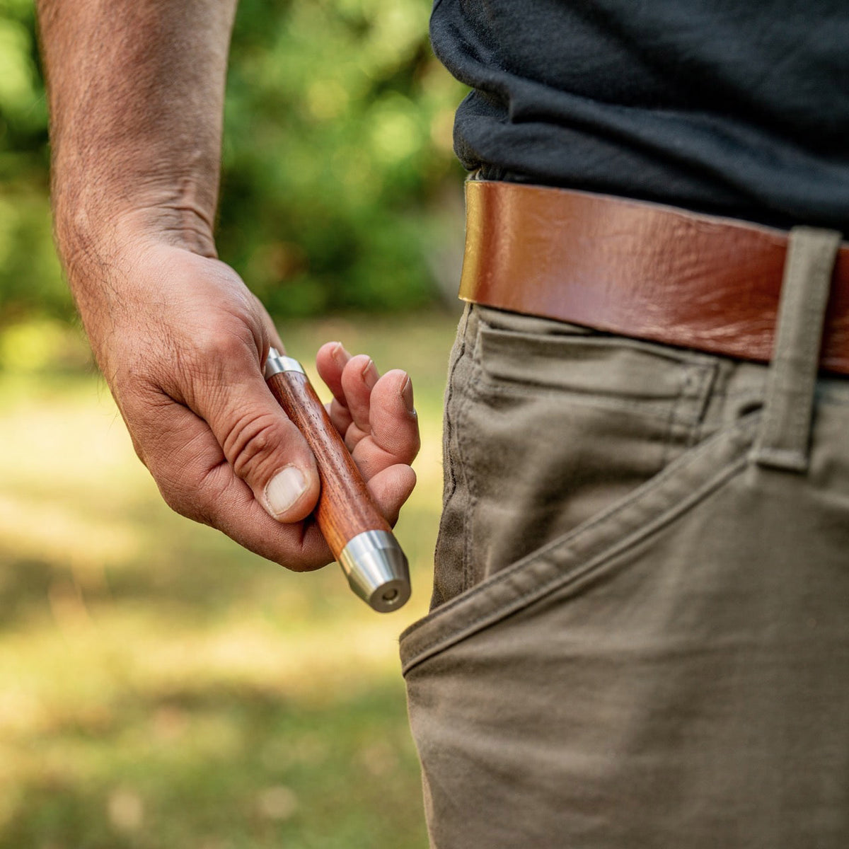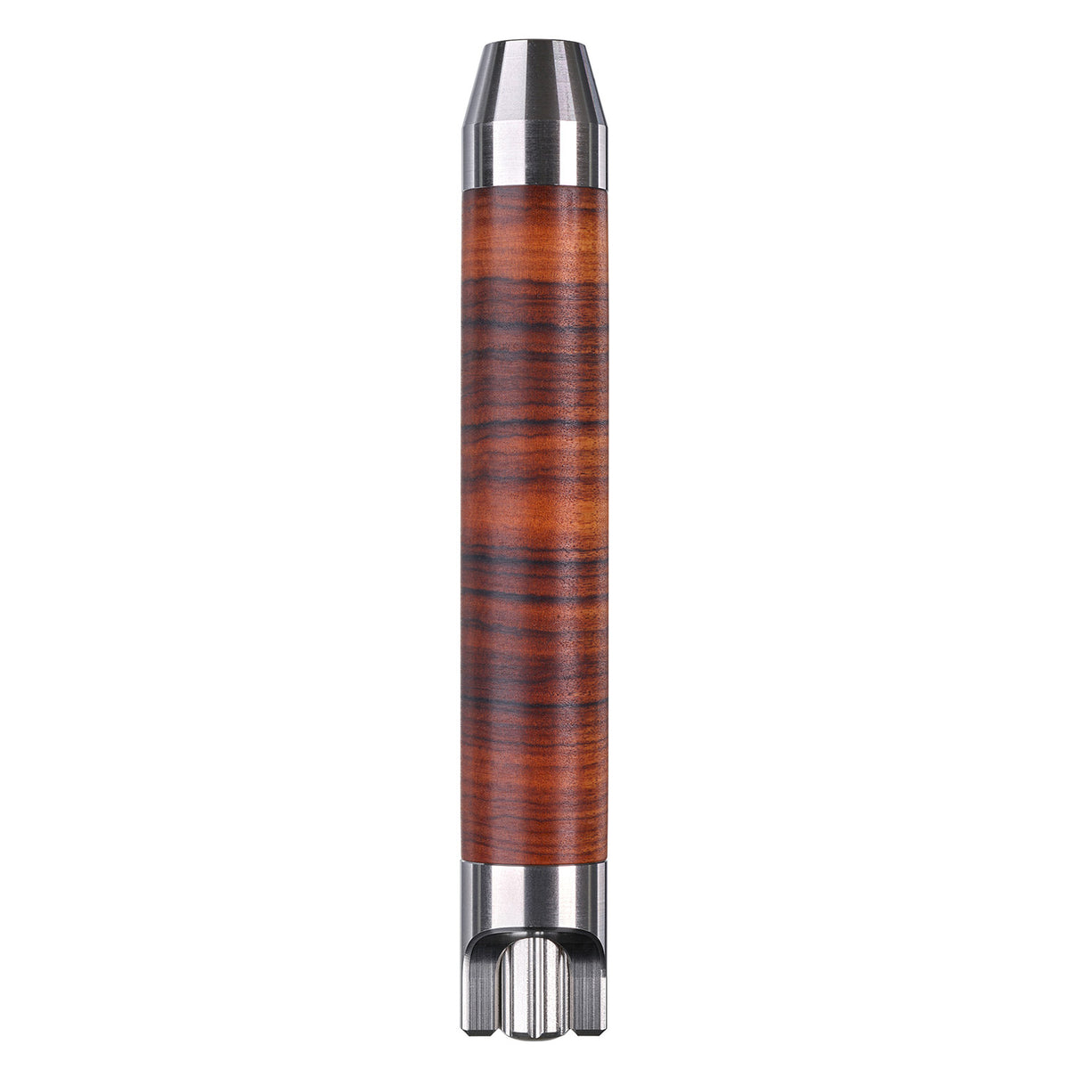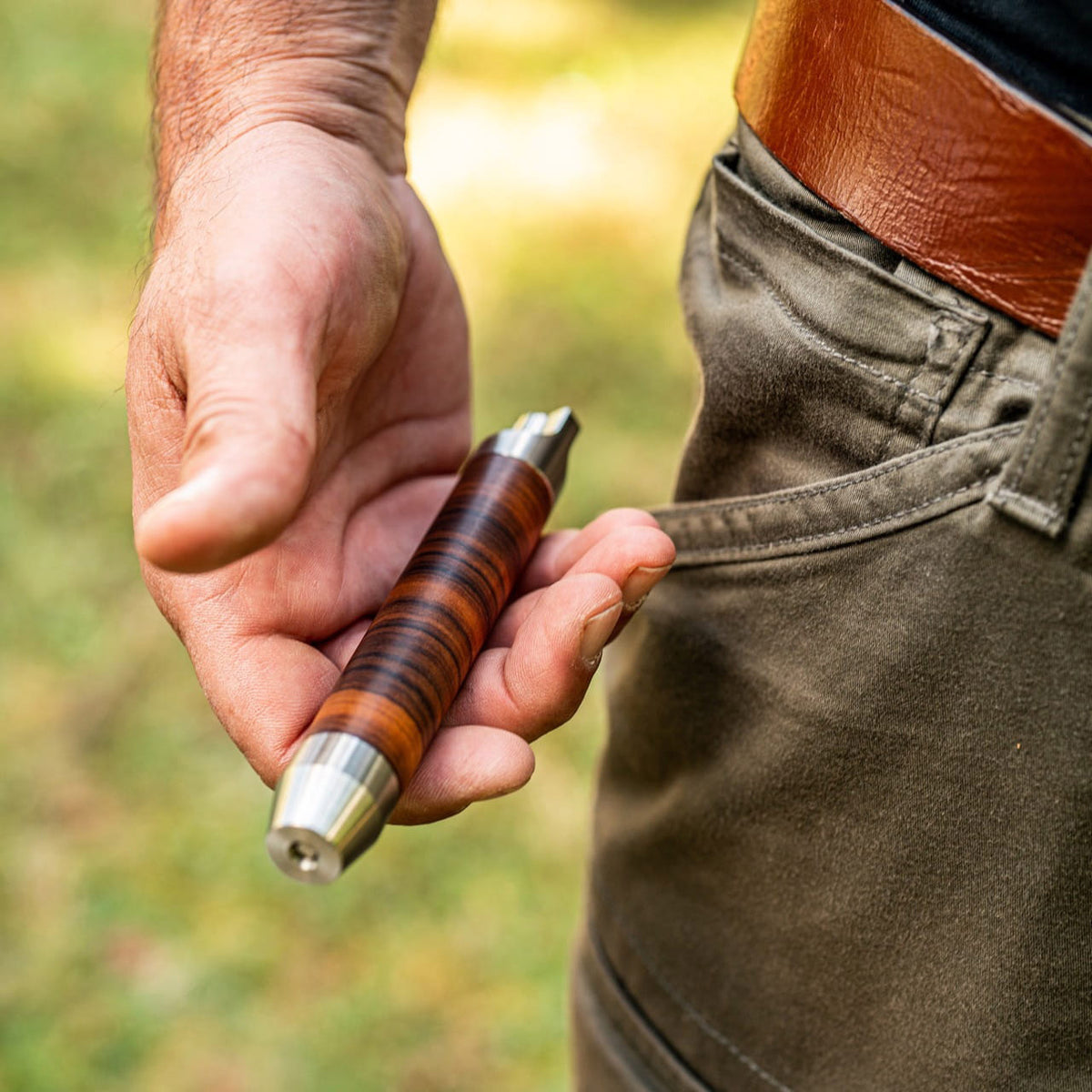 Das kompakte Design des XADR ONE Mahagoni ermöglicht es Ihnen, ihn überallhin mitzunehmen. Damit können Sie sicher sein, dass Ihre Messer scharf sind, wenn Sie sie am meisten benötigen. Außerdem lässt sich die Hülse leicht abnehmen und austauschen. So können Sie sie ganz nach Ihrem persönlichen Stil anpassen.