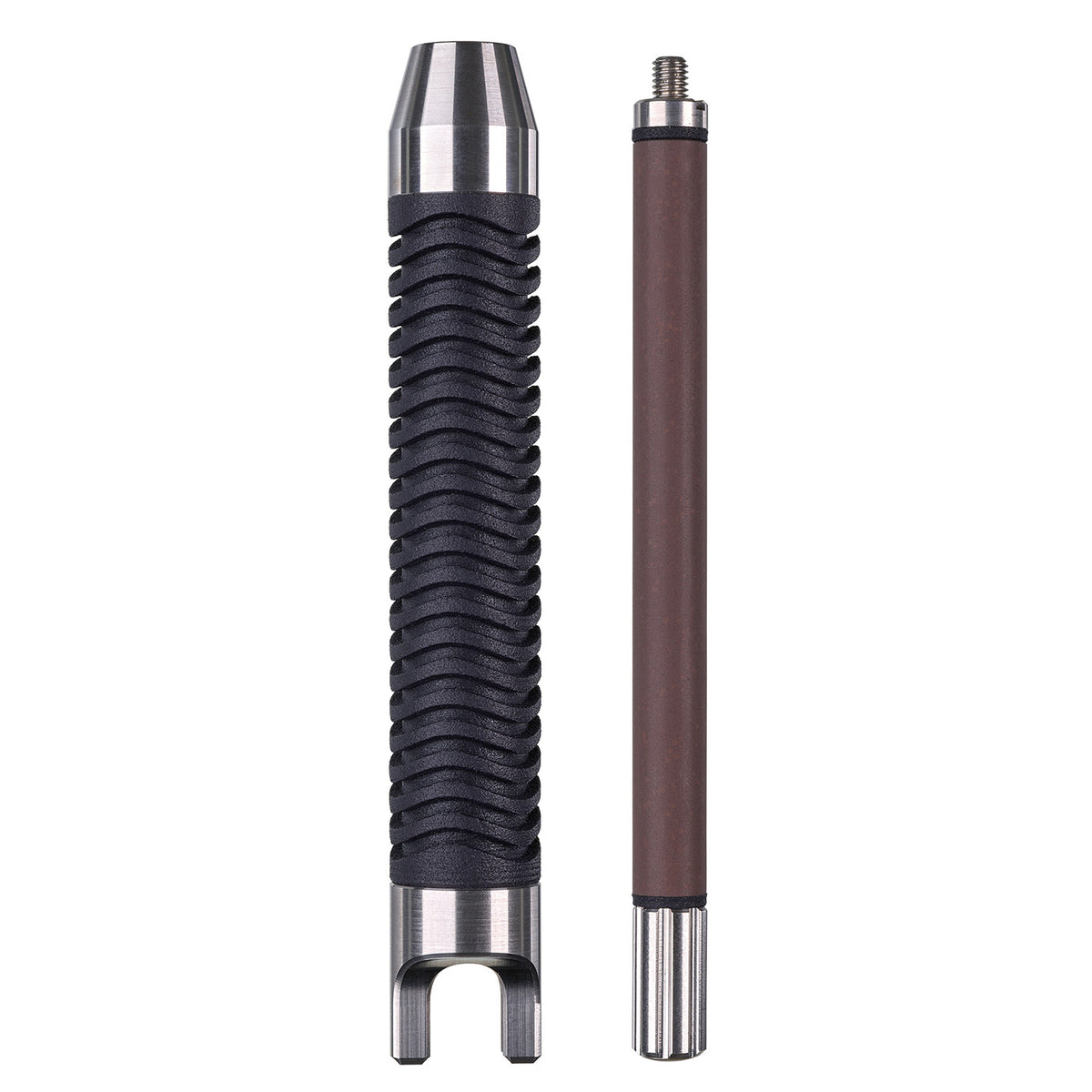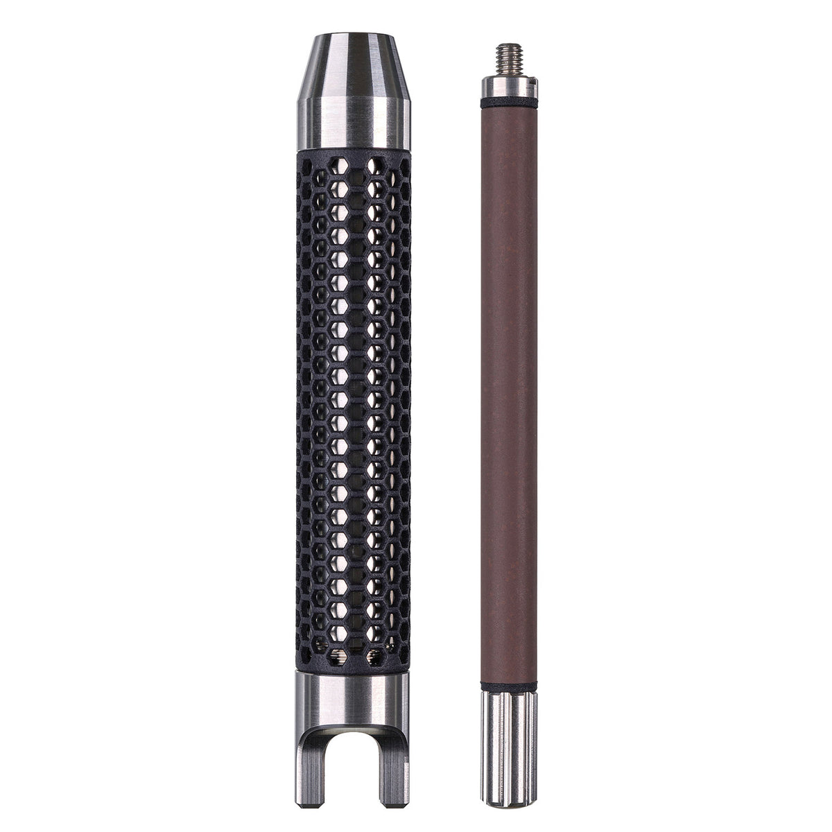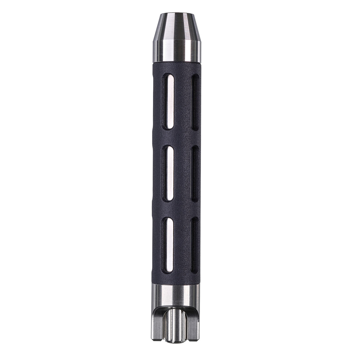 Durch sein einzigartiges Design ist dieser Messerschärfer so kompakt wie möglich und lässt sich trotzdem leicht bedienen und verstauen. Die Hülle dient gleichzeitig als Griff und schützt den Abrichtstab beim Transport. Verstauen Sie den Abrichtstab in der Hülse, halbiert sich die Länge des XADR ONE. So geht der Transport ganz einfach vonstatten. Beim XADR ONE können Sie außerdem den Griff ganz einfach austauschen, damit Sie Ihren Messerschärfer individuell gestalten können.