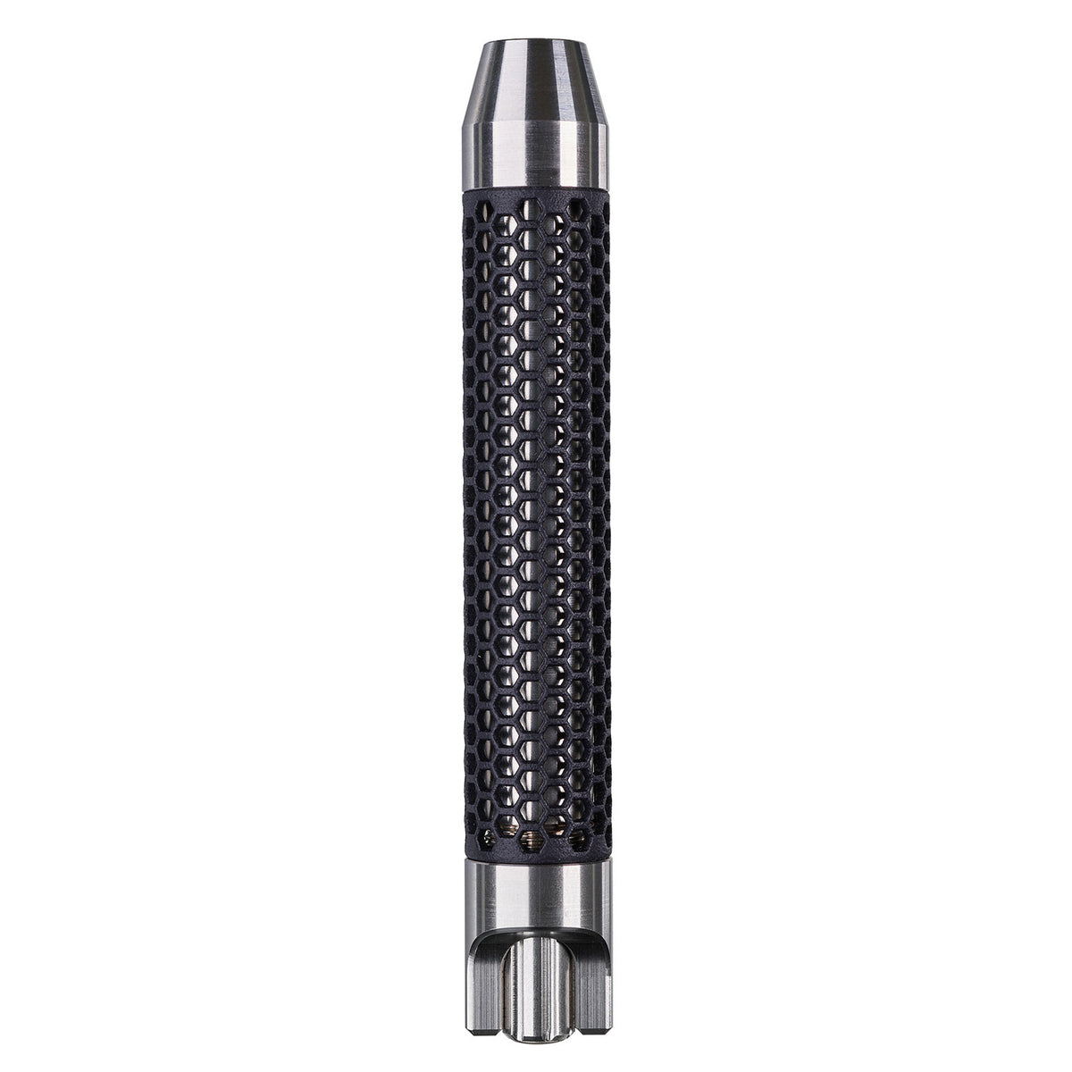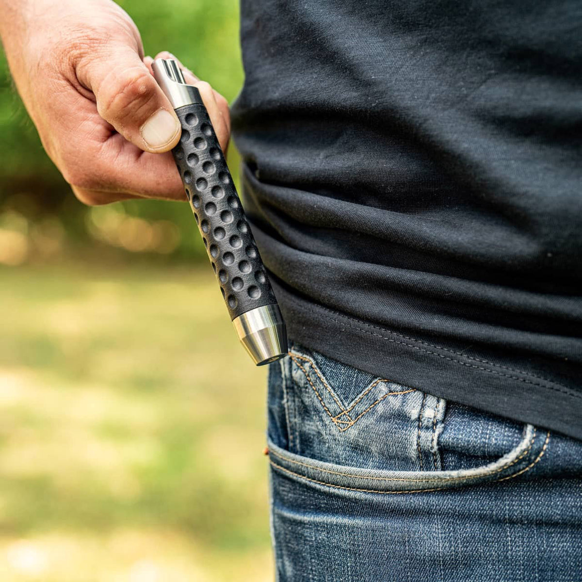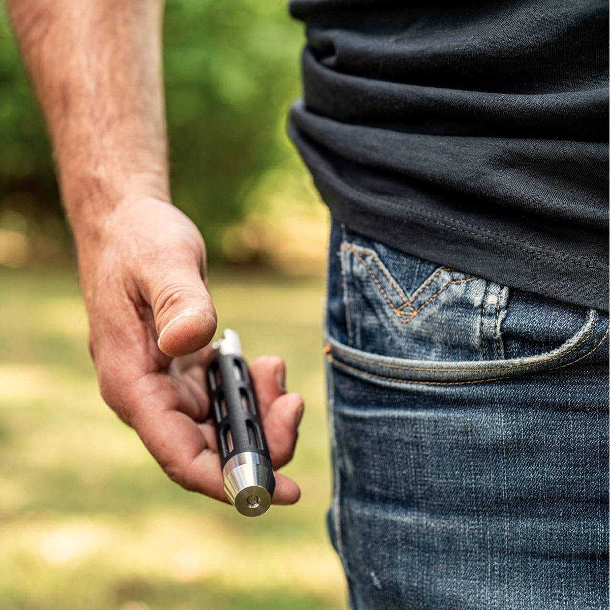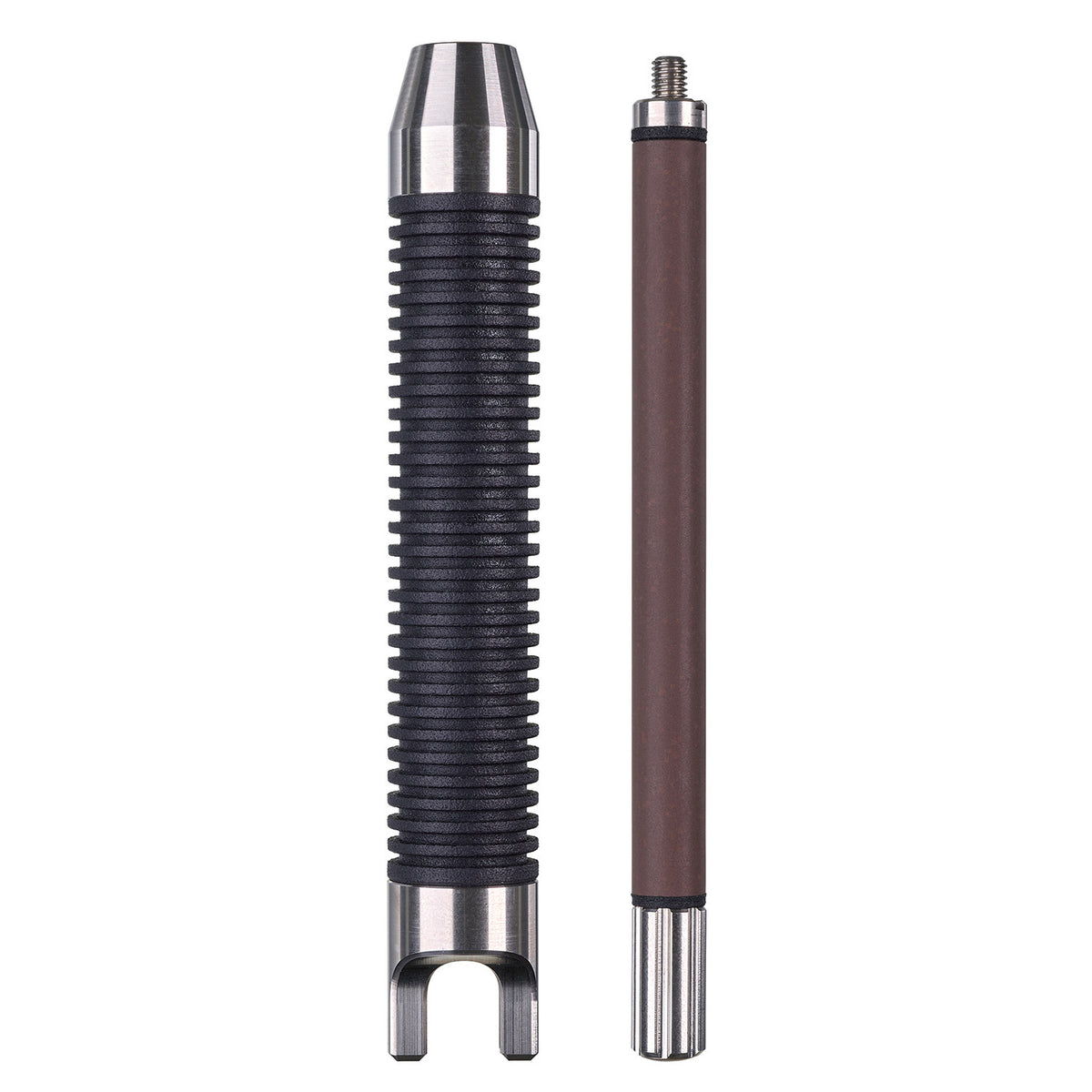 Durch sein einzigartiges Design ist dieser Messerschärfer so kompakt wie möglich und lässt sich trotzdem leicht bedienen und verstauen. Die Hülle dient gleichzeitig als Griff und schützt den Abrichtstab beim Transport. Verstauen Sie den Abrichtstab in der Hülse, halbiert sich die Länge des XADR ONE. So geht der Transport ganz einfach vonstatten. Beim XADR ONE können Sie außerdem den Griff ganz einfach austauschen, damit Sie Ihren Messerschärfer individuell gestalten können.